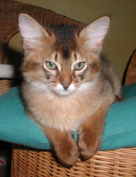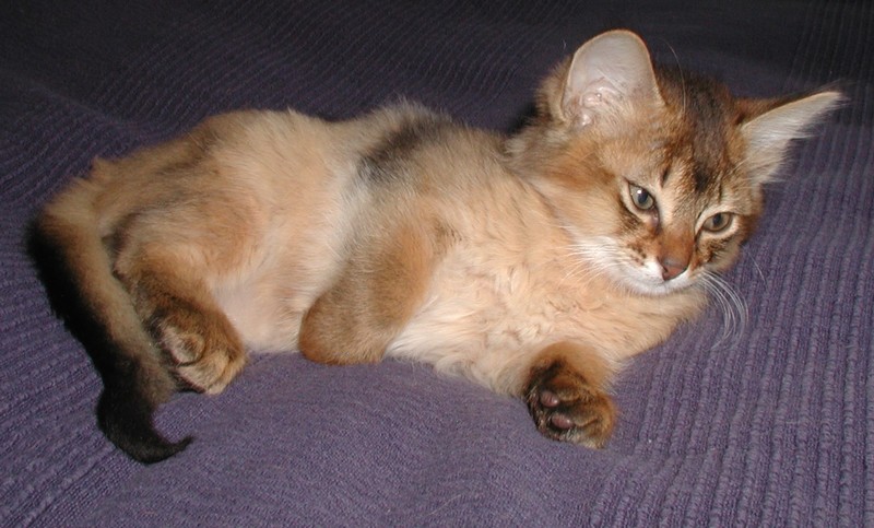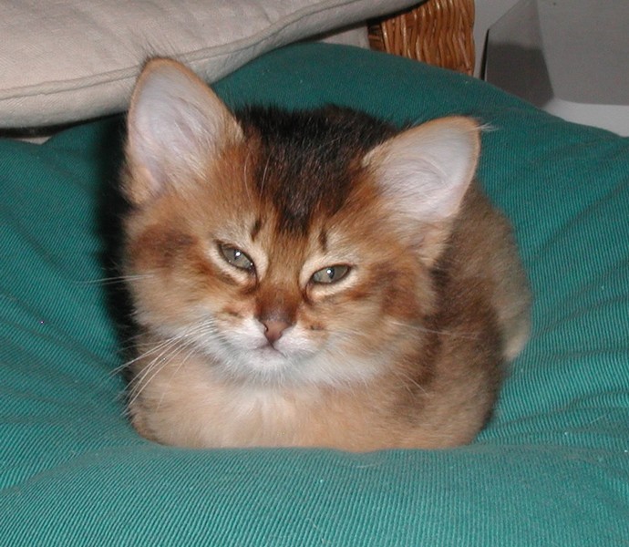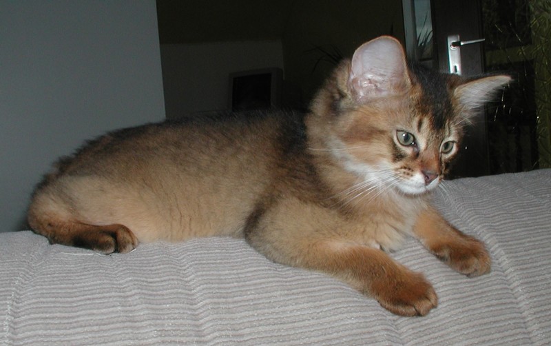 Cajun, zur Zeit der Farbintensivste, der als letzter Kater das Licht der Welt erblickte. Er kommt gerne aufs Sofa geklettert und legt sich nach intensivem Arm abschlecken eng an ein Bein gekuschelt.