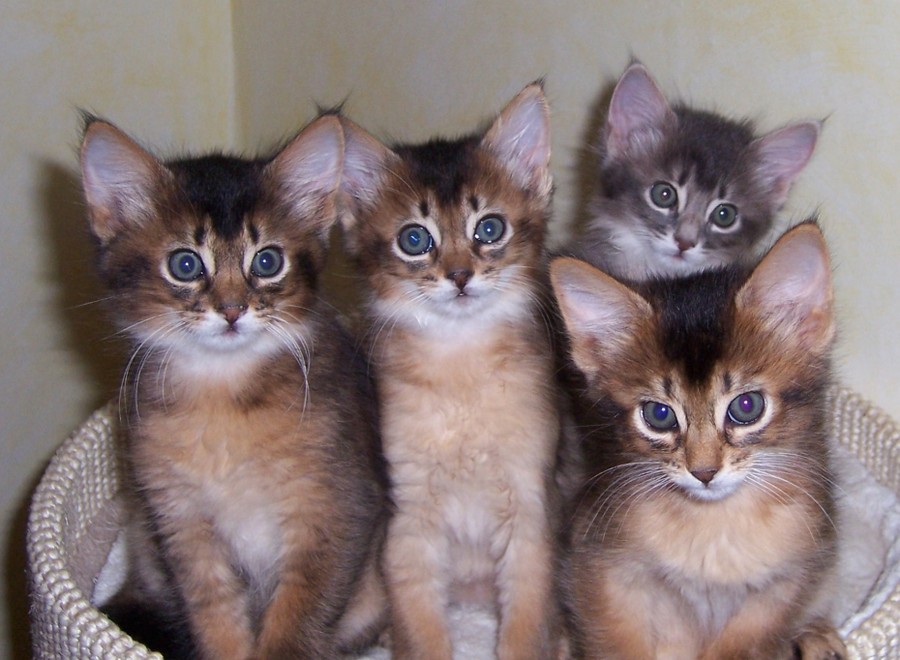 Mittlerweile haben die Kleinen auch schon Namen bekommen. Der Kater heißt Darjeeling, Duchessa und Darcy die beiden wildfarbenen Mädchen und Dschinnja unser blaues Mädchen.