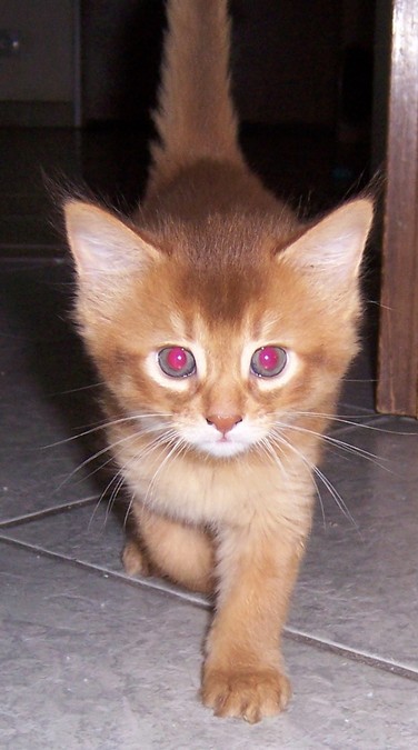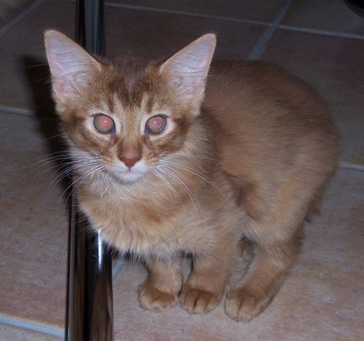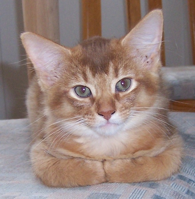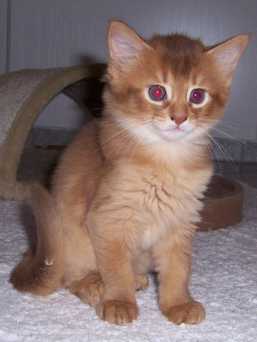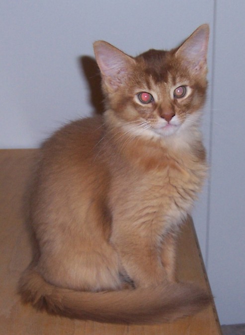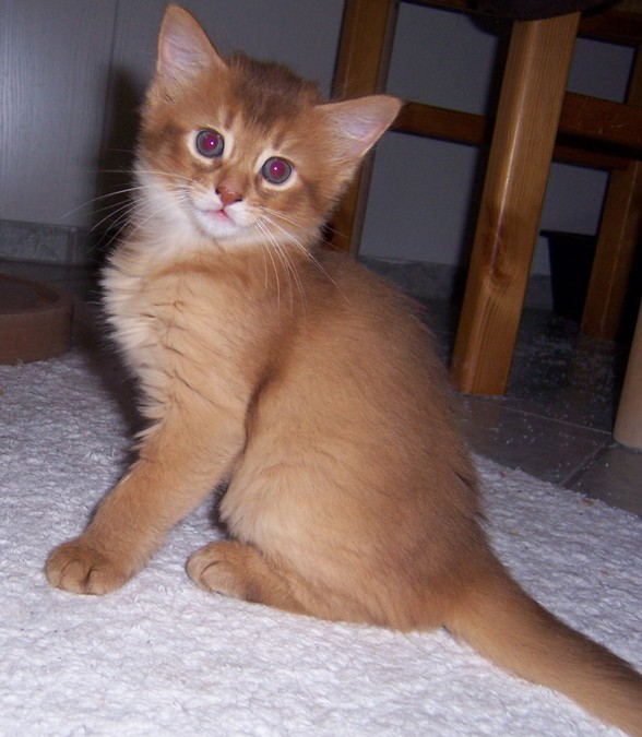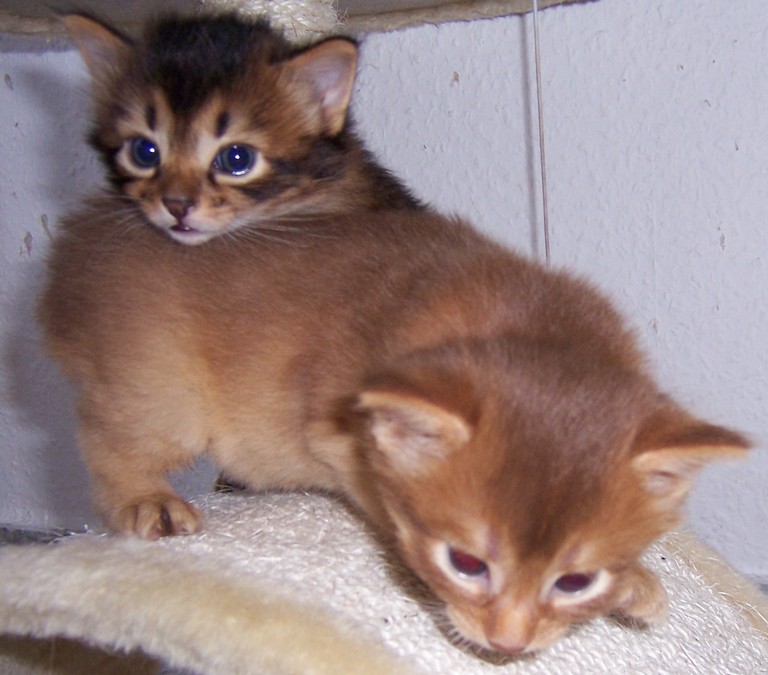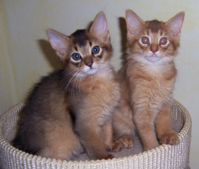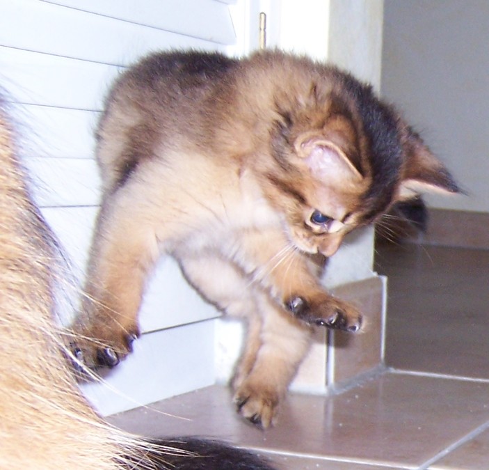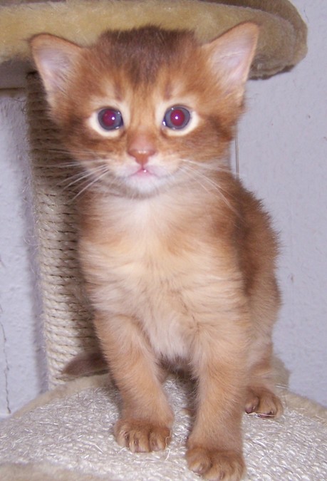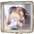 Unsere Darcy hat es mal wieder ein wenig spannend gemacht und leider lief auch nicht alles normal. Eigentlich war der errechnete Geburtstermin der 28.07., aber Darcy dachte nicht daran pünktlich zu sein. Wenigstens war es diesmal nur einen Tag Verzögerung. Die Babys kamen also am 29.07.2009 zur Welt. Morgens sagte sie mir schon Bescheid, dass es losgeht, aber es tat sich nicht wirklich was. Sie sprang in die Kiste rein und wieder raus und war recht nervös. Es zog sich bis zum Nachmittag hin und um 17.03 Uhr kam dann endlich das erste Kitten zur Welt. Leider hatte es einen offenen Bauch und musste eingeschläfert werden. Um 17:51 Uhr kam dann ein kleiner wildfarbener Kater zur Welt. Ganz normal und gesund. Darcy stürzte sich auf die Nachgeburt. Ich durfte das Baby abnabeln und wiegen. Mit 110 g ein recht ordentliches Gewicht. Um 18.22 Uhr kam Kitten Nr. 3 zur Welt. Ein sorrel Mädchen, ebenfalls gesund und munter und mit 109 g auch ganz schön propper. Und das war es. Damit hat Darcy die Geburt beendet.