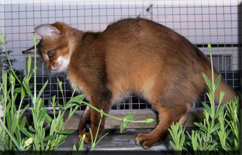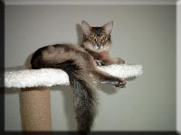 Indi hat sich zu einem hübschen Jungkater entwickelt. Leider markiert er schon seit einiger Zeit und hatte bis vor kurzem noch keinerlei Interesse an Mädchen. Die ersten Rolligkeiten von Enya und Honeymoon haben ihn völlig kaltgelassen. Das hat sich aber dann mit der zweiten Rolligkeit von Enya schlagartig geändert. Die Deckung war erfolgreich und am 07. Oktober 2010 ist Indi Vater von drei Katerchen geworden. Leider hat sich unser Wunsch nach einem Mädchen nicht erfüllt und so wird er zu unserem großen Bedauern kastriert, bevor es zu Rangordnungskämpfen zwischen den Katern kommt, denn Jumpie ist im Begriff potent zu werden. Damit uns Indis Linie nicht verloren geht, wird ein Sohn seiner Schwester Ivy (Irena) bei uns einziehen und uns hoffentlich das ersehnte Mädchen schenken.