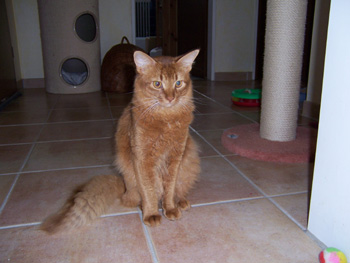 Hannibal kam im März 2008 als Deckkater zu uns. Er hat sich nach ein paar Tagen prima in die Katzengemeinschft eingefügt. Er ist eine richtig coole Socke. Auf Ausstellungen lässt er sich prima präsentieren und ist kein bisschen nervös. Er ist sehr anhänglich und ein Schmuser vor dem Herrn. Er hat eine schöne Farbe und was mir besonders an ihm gefällt, er ist komplett bis zum Kinn durchgefärbt. Er hat tolles Fell, davon recht viel und jetzt schon recht lang und einen wirklich schönen Puschelschwanz. Er hat alle unsere Mädchen einmal gedeckt und von seinen Kindern haben wir Honeymoon und Indiana Jones behalten.