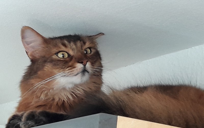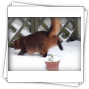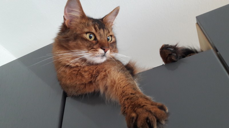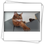 Orvieto hat sich zu einem richtig schönen Kater entwickelt, der seine Damen voll im Griff hat. Wenn er einen mit seinen Äuglein anschaut, dann kann man ihm nicht böse sein, egal, was er gerade mal wieder angestellt hat. Er liebt das Apportieren und könnte das den ganzen Tag machen.