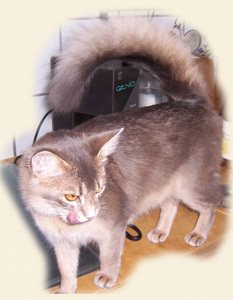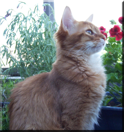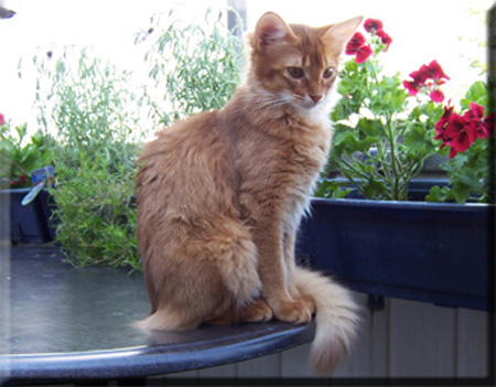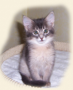 Dschinni war die Überraschung des Wurfes, denn keiner hat damit gerechnet, dass der Herr Papa Verdünnung trägt. Mit Darcy dreht sie hier alles auf links. Eine Tobemaus wie sie im Buche steht. Am liebsten ist sie auf dem Balkon an der frischen Luft. Von einem sehr starken Schnupfen aus der Kittenzeit hat sie die Schleimhäute stark vernarbt, so dass sie beim Atmen laute Geräusche von sich gibt. Daher wird sie auf Ausstellungen eher nicht zu finden sein. Ob sie jemals einen Wurf großziehen wird -